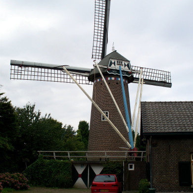 Beltkorenmolen De Welvaart; bovenkruier met bakstenen romp. 1825. Belt gewijzigd.