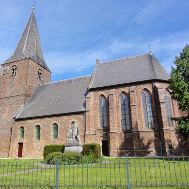 Herv. Kerk. De in 1821 gebouwde Hervormde Kerk is een driezijdig gesloten zaalkerkje met spitsboogvensters en pannen dak, waarop boven de voorgevel een zeskantig houten klokkentorentje met spits is gebouwd. Houten omlijsting van de toegangsdeuren met pilasters en gebogen fronton.