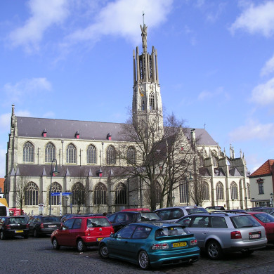 R.K. KERK H. Willibrordus. Laatgotische geheel met kruisribgewelven overdekte KRUISBASILIEK met op de kruising een oudere toren. Het geheel met ledesteen beklede gebouw vormt een prachtig voorbeeld van een kleine stadsbasiliek in rijpe Brabantse stijl. De toren kan, voor wat de onderbouw betreft, nog uit de 14e eeuw dateren; de kerk zelf werd gebouwd in de tweede helft van de 15e en de eerste helft van de 16e eeuw. Inwendig: rijkgesneden preekstoel plm 1800. Van oorsprong eenklaviers orgel in 1610 gemaakt door L. Isore. Orgelkas met geschilderde deuren. In 1971 gereconstrueerd en uitgebreid met een onder-positief en vrij Pedaal. In de drie straalkapellen van de kooromgang drie glas-in- lood vensters met voorstellingen van Willebrord (1902), Maria, Christus (gesigneerd 'Jul Dobbelaere Brugge', 1901). In de noordmuur van het koor venster met Mariavoorstelling ('Rosa Mystica'). In de zuidmuur van het koor glas met tekst 'Gaat tot Jozef', gesigneerd 'Mengelberg Utrecht' en 'd d Jos Seydlitz'. Aansluitend kapel met voorstelling van de Heilige Familie (1868-1893) en twaalf heiligen. Glas in lichtbeuk van koorsluiting met drie scenes uit het Lijdensverhaal. Venster in westgevel met Laatste Oordeel, gesigneerd 'Joep Nicolas 1933'. De glasvensters vormen waardevolle kunst- en cultuurhistorische onderdelen van de basiliek. Klokkenstoel met gelui bestaande uit een klok van W. Wegewaert, 1563, diam. 156 cm en een klok van Pieter Hemony, 1669, diam. 66 cm. Mechanisch torenuurwerk, B. Eijsbouts, 1915. Op de muur van de zuidbeuk zit een iets oostelijk afwijkende zonnewijzer.