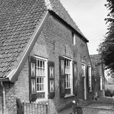 Hoeve (midden XIX) met in de voorgevel vensters met luiken in de Enghuizense kleuren en de oorspronkelijke roedenverdeling.