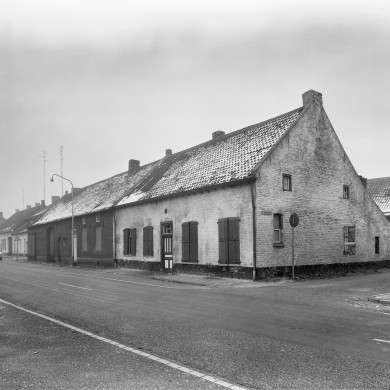 BOERDERIJ XVIII-XIX. Zadeldak evenwijdig aan de straat. Aan de straat een wagenpoort en een, gedeeltelijk dichtgemetselde poort van de voormalige potstal.