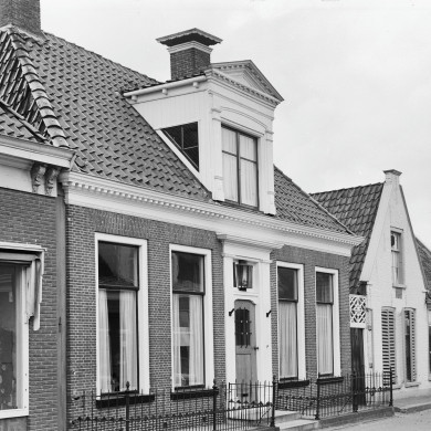 Pand, bestaande uit een zuidelijk deel met de nok loodrecht op de straat, zadeldak tegen topgevel waarin steen met opschrift. Haaks daarop een noordelijk deel met de nok evenwijdig aan de straat, zadeldak tegen zijtopgevel. Merendeels zesruits vensters.