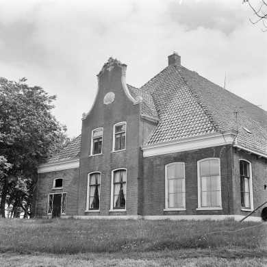 Jornahus. Boerderij in 1914 herbouwd met gebruikmaking van 18e eeuwse topgevel met gebeeldhouwde lijsten en bekervorming.
