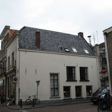 Pand met vroeg 19e eeuwse lijstgevel voor een vermoedelijk 17e-18e eeuwse kern. Natuurstenen vensterdorpels; blindnissen ter weerszijden van het zolderluik. Ramen voorzien van met rozetten belegde houten zwikvullingen. Moderne winkelpui.