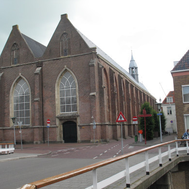 Broederkerk. Een langgerekte hallenkerk bestaande uit twee even lange, even hoge en op gelijke wijze gesloten beuken; hoofdzakelijk XVd tot stand gekomen. In de hoek, gevormd door beide koorsluitingen een achtzijdig traptorentje; op het zuidbeuk een dakruiter (XIXb). Tegen de noordbeuk aangebouwd een poortje, dat toegang geeft tot de v.m. armenkamer. Inwendig is de ruimte thans door een dwarsmuur in tweeën gedeeld; de westelijke helft is in gebruik als N.H.Kerk. De beide beuken zijn van elkaar gescheiden door ronde zuilen met bladkapitelen en overwelfd met kruisribgewelven. In het oostelijk gedeelte is het stergewelf van de noordbeuk bewaard gebleven; in de muur van de gang naar de v.m. armenkamer een rondboogvenster met deelzuiltje. Preekstoel ca. 1840; zerken en tekstborden. In orgelkas van Van Gruisen uit 1822 (met schijn-Rugwerk) een tweeklaviers instrument met pijpwerk uit de 16e, 17e, 18e, 19e en 20e eeuw. Rond 1787 ingrijpende verbouwing door F.C. Schnitger jr.