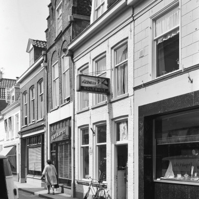 Huis met puntgevel, bekroond door toppilaster op kraagsteentje; de hoeken gedekt door geprofileerde natuurstenen platen. Vlechtingen. Acht- en zesruitsschuifvensters met brede en geschubde middenstijl. Voordeur met bovenlicht. Strekken. XVIII.