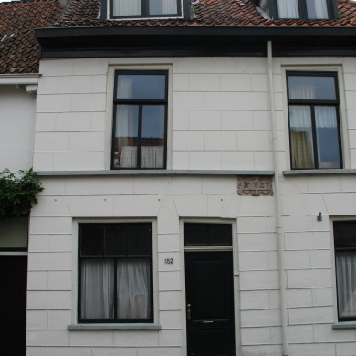 Pand onder zadeldak en met gepleisterde lijstgevel, waarin cartouche met jaartal 1627. Vormt een geheel met het buurnummer 152.
