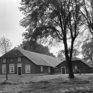 Op terp gelegen boerderij van het Kamper type. Rieten zadeldak met wolfschilden. Op het erf een stal onder afgewolfd rieten zadeldak en een hooiberg met rieten kap. XIX.