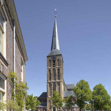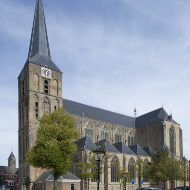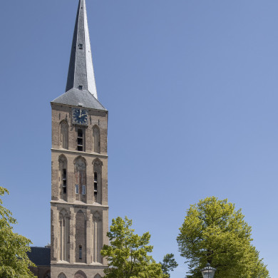 Boven- of St. Nicolaaskerk. Een geheel in steen overwelfde KRUISBASILIEK, bestaande uit een vijfbeukig schip, transept, twee portalen aan weerszijden van het schip tegen de westzijde van de transeptarmen, en koor met zijbeuken en zijbeukkapellen, benevens koorsluiting met omgang en zeven straalkapellen. De middenbeuk van het schip met de aansluitende zijbeuken en het transept dateren gedeeltelijk uit de XIV; overigens zijn ze evenals de buitenste zijbeuken van het schip XV. Het koor werd gebouwd naar het ontwerp van Rutger van Keulen (van Kampen) in de tweede helft van de XVe eeuw; het vertegenwoordigt na het koor van de Dom van Utrecht het eerstvolgende koor met volledige omgang en kapellenkrans in Nederland. De beide portalen zijn toevoegingen van omstreeks 1500. Bij XIX restauraties werd de natuurstenen bekleding van de buitenzijde der straalkapellen vervangen door één van baksteen en werd de buitenzijde van de koorlantaarn opnieuw met natuursteen bekleed. Sinds 1958 is het schip in restauratie. Inwendig: tussen de pijlers van het koor sierlijke zandstenen koorafsluitingen en sedilia XV; vroeg renaissance koorhek (1552), preekstoel (ca. 1500), orgel vervaardigd door Johan Slegel met rugpositief en tribune (1670-1676). Smeedijzeren hekken (XVIIa-XVIIIa), ijzeren doopboog (1629). Gebeeldhouwde eiken betimmering; laat-gotische hardstenen doopvont. Grafmonumenten van vice-admiraal Jan Willem de Winter (XIXa); grafzerken; decoratieve gewelfschilderingen; tegen de torenmuur een beschildering 1744. Toren. Gebouwd begin XV; spits XIXa. De toren bestaat uit vier geledingen; in de onderste een dorische poortdoorgang XIX A, daarboven in elke geleding drie spitsboognissen, resp. galmgaten. Orgel met Hoofdwerk, Bovenwerk, Borstwerk, Rugwerk, in 1742 gemaakt door A.A. Hinsz. In 1788 uitgebreid met een vrij Pedaal door F.C. Schnitger jr en H.H. Freytag. Bij de restauratie in 1974 werd een tweede Bovenwerk toegevoegd om de registers die in de 19e eeuw waren toegevoegd een passende plaats te bieden. Klokkenstoel met gelui van twee klokken van G. van Wou, 1482, diam. respectievelijk 147,8 cm. en 119,5 cm. Mechanisch torenuurwerk Gebr. van Bergen, Midwolda, 1917, later voorzien van elektrische opwinding. In het koor van de kerk toont een losstaande steen van 83,5 cm. lengte en 69 cm. hoogte, waarvan aan de rechter onderzijde een groot stuk afgebroken is, een oostwijzer, die de tijd in Kampen aangeeft en tevens voor Batavia en Curaçao. In de rechter onderhoek staan de jaartallen: 1779 en 1805. In de linker onderhoek: 1730 7/22 I.V.V. waaronder 1857.....39. De zonnewijzer zal dus 22 juli 1730 gemaakt zijn. Het is niet bekend waar de zonnewijzer oorspronkelijk heeft gezeten.