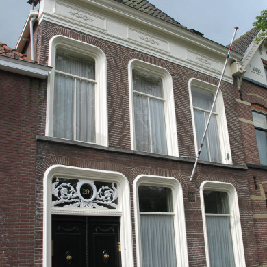 Pand met lijstgevel; gepleisterde deur- en vensteromlijstingen, XIXc.