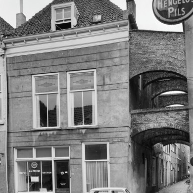 Pand met gepleisterde lijstgevel, dakkapel. XVIII/XIX. Gemetselde boogvormige schoren overspannen de Koldenhovensteeg tussen de panden Voorstraat 96 en 98.
