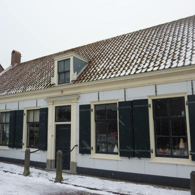 Gepleisterd rechthoekig vissershuisje, bestaande uit begane-grond met pannen zadeldak tussen puntgevels, wellicht 17e eeuw.