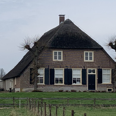 BOERDERIJ, blijkens jaartalankers uit 1773, met links een opkamer. Half zadeldak, rechts omlopend. Vensters met luiken en schuiframen met zes- en 20-ruitsroedenverdeling. Bovenvensters met tweelichtskozijnen. Stoep.