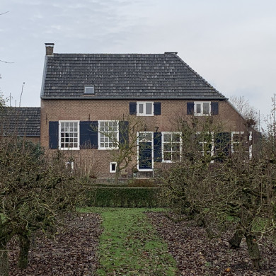 BOERDERIJ, blijkens jaartalankers uit 1773, met links een opkamer. Half zadeldak, rechts omlopend. Vensters met luiken en schuiframen met zes- en 20-ruitsroedenverdeling. Bovenvensters met tweelichtskozijnen. Stoep.