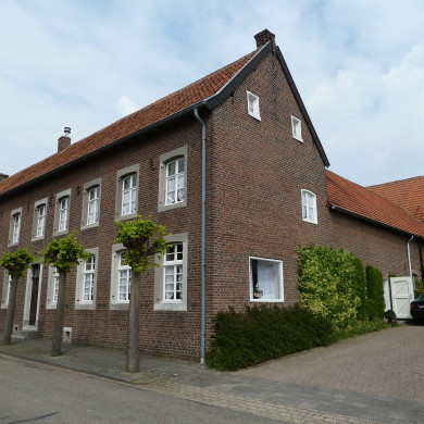 Hoeve van baksteen om een gesloten binnenplaats. Het woonhuis heeft lateiboogomlijstingen van Naamse steen en ankers, 1802. Deur en snijraam in late Lodewijk XVI-stijl.