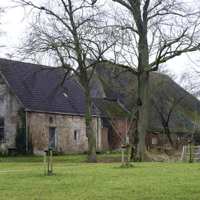 BOERDERIJ "Oldeklooster". Hoeve van het kop-hals-romptype, waarvan het deels gepleisterde woongedeelte, onder pannen zadeldak tussen puntgevels, uit de 16e eeuw dateert. De puntgevel aan de voorzijde heeft een muizetandlijst. In de achtergevel laat-middeleeuwse smalle getoogde vensters, thans dichtgemetseld, met natuurstenen middendorpels. Het stalgedeelte onder hoog wolfdak heeft in de achtergevel twee getoogde inrijpoorten en een getoogd poortje.