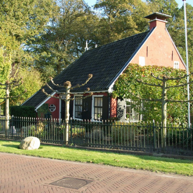 Cafe de Poel. Blokvormig pand met verdieping onder schilddak met hoekschoorstenen waarop borden. Op de verdieping aan de voorzijde vijf vensters met ieder zes ruiten, aan de zijgevels telkens twee dergelijke vensters. Voor de gevel leibomen.