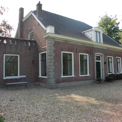 LANDHUIS. Rechthoekige grondvorm, rechte gootlijst. Muurankers 1781 aan achterzijde later uitgebreid.
