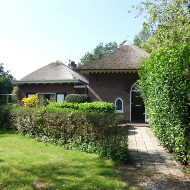 THEEKOEPEL XIX, bakstenen gebouw onder rieten tentdak met lancetvormige (deels dichtgemetselde) toegang en vensters. De grote vensters met middenstijl, roedenverdeling en lancetvormige luiken; lunetvormig dakvenster. Belendend door jongere aanbouw.