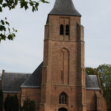 Bakstenen gotische dorpskerk met driezijdig gesloten koor zonder steunberen (mogelijk XIV), breed, eenbeukig schip met lagere transeptarmen (XVI).