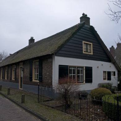 Pand zonder verdieping onder rieten zadeldak. Eind 17e of begin 19e eeuw. Vensters met luiken en 9-ruitsschuiframen.