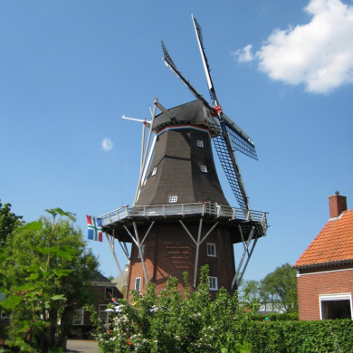 Molen Hollands Welvaart. Achtkante bovenkruier met stelling in 1655 gebouwd. Korenmolen.
