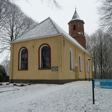 HERV.KERK en TOREN op ruim kerkhof.