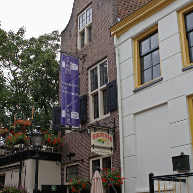 Aan de Oostzijde van het Veerhuis een huis met klokgevel (XVIII) op de binnenplaats naast het Van Aarden Hof.
