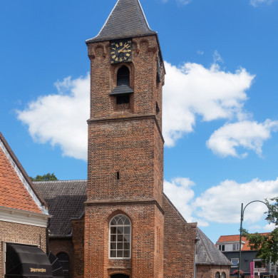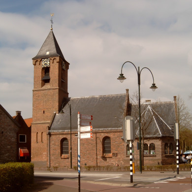 Ned.Herv.Kerk. Het oudste deel bestaat uit een bakstenen eenvoudig schip en bijbehorend smal rechtgesloten koor, eind XIII begin XIV. Slanke toren, boogfries onder de spits, omstreeks 1500. Noordwaarts uitgebreid en in 1937 hersteld. Klokkenstoel met klok van C. Ammeroy, 1597, diam. 60,3 cm. Mechanisch smeedijzeren torenuurwerk, elektrische opwinding.
