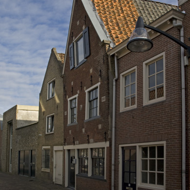 Pand onder zadeldak tegen gepleisterde topgevel.