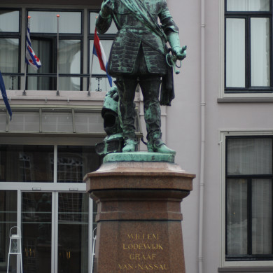 Standbeeld en sokkel ter herinnering aan Willem Lodewijk van Nassau-Dillenburg (Us Heit). In 1905 ontworpen door Bart van Hove en Willem Molkenboer.