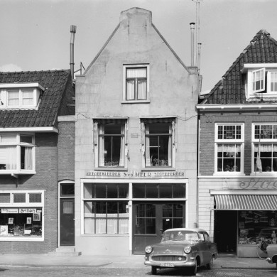 Pand met verdieping onder zadeldak tegen gepleisterde puntgevel.