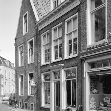 Pand onder zadeldak met voorschild. Winkelpui XIX A, vensters op de verdieping met zes ruiten.