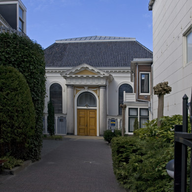 Doopsgezinde Kerk. Eenvoudig gebouw waarvan de ingang omlijst is met kolommen. Aan de zuidoostkant bevindt zich de consistorie. Preekstoel. Orgel met Hoofdwerk en Bovenwerk, in 1786 gemaakt door J. Strumphler voor de Doopsgezinde Kerk "De Zon" in Amsterdam. In 1850 overgeplaatst naar Leeuwarden. In 1858 ingrijpend verbouwd door L. van Dam en Zonen.