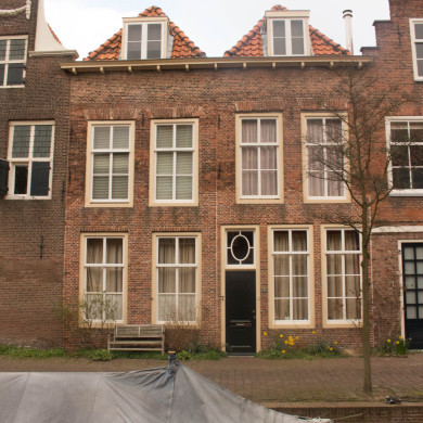 Hofje van Eva van Hoogeveen. Trapgevel met zandstenen vleugelstukken. Poortje met opschrift: "'t Hofken van Eva van Hoogeveen", gesticht 1659. Gerestaureerd 1939. Regentenkamer. 12 huisjes om een binnenplaats, in het midden hardstenen pomp, 18e eeuw, bekroond door embleem uit Eva's wapen.
