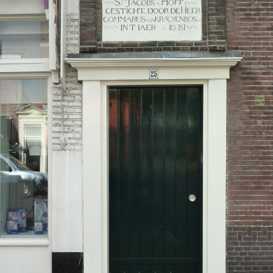 St. Jacobshof met 17 woningen, poortgebouw met Regentenkamer. Steen met opschrift 1681.