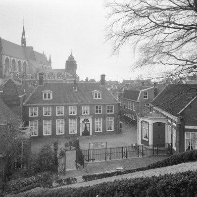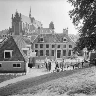 Oorspronkelijk Vijf kerkhuizen tegen de noordoostzijde van de Hooglandse Kerk. Rechte kroonlijst, alle onder een dak, met oorspronkelijke kruiskozijnen en roedenindeling. Gebouwd in 1652 naar ontwerp van Arent van 's Gravesande.