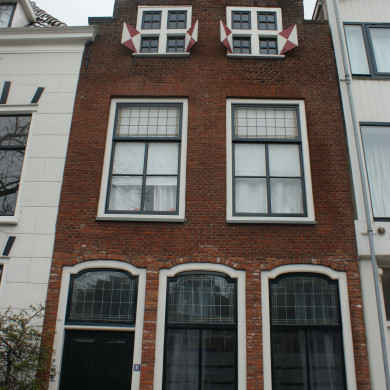 Pand met tuitgevel, oude roedenverdeling ramen op bovenverdieping.