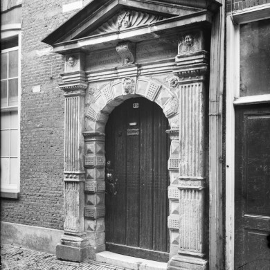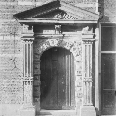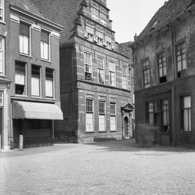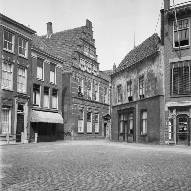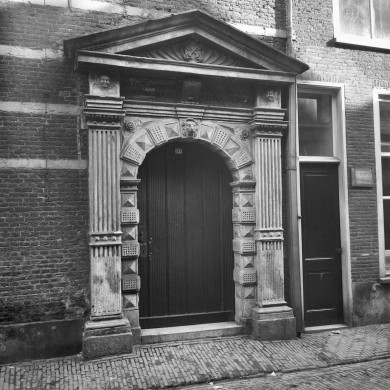 V.m.Latijnse School. Hoog opgaande trapgevel met verbreding aan de rechterzijde. Ingangspoortje in Toskaanse Stijl. Latijnse school 1509-1600, Sted.Gymnasium tot 1883, gerestaureerd 1952/3.