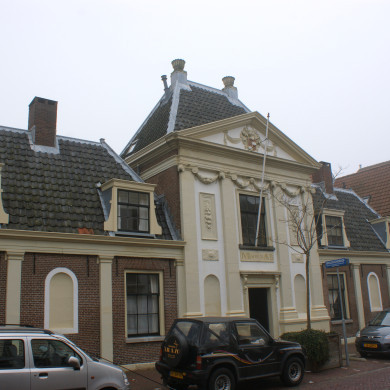 Hof van Brouckhoven, 16 woningen met natuurstenen versierde poort waarboven regentenkamer. Gesticht 1640, huisjes later verhoogd. Achtergevel aan de Lange Schoolstraat.