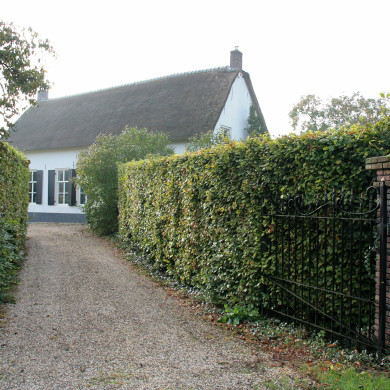 Boerderij, waarvan het woonhuis een rieten zadeldak, ankers 1805 en vensters met zesruitsramen en luiken heeft. Gesneden consoles onder het hoofdgestel van de deur.