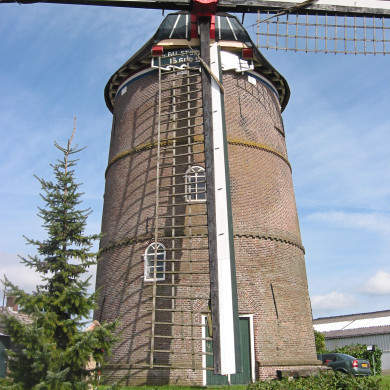 Korenmolen "De Zwaan". Belangrijke, ronde bakstenen torenmolen op belt. Gebouwd in 1644.