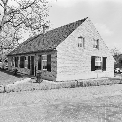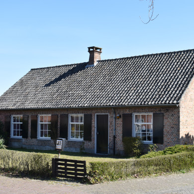 Eenvoudige boerderij van het Brabantse langgeveltype, midden 19e eeuw. Pannen zadeldak. Vensters met luiken en zesruitsschuiframen.