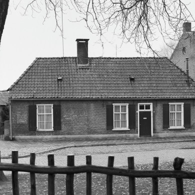 Eenvoudige boerderij van het Brabantse langgeveltype, midden 19e eeuw. Pannen zadeldak. Vensters met luiken en zesruitsschuiframen.