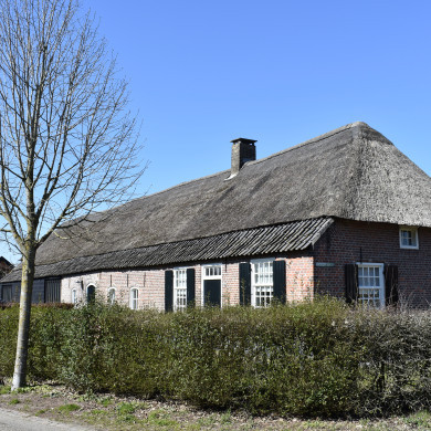Boerderij van het Brabantse langgeveltype uit 1854. Met riet en pannen gedekt wolfdak. Vensters met luiken.