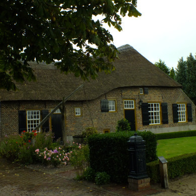 17e eeuwse boerderij met uitgebouwde zijkamer. Rieten schilddak doorlopend over de zijkamer en aansluitend tegen een puntgevel met rookkanaal. Waterput en bakhuis op het erf.