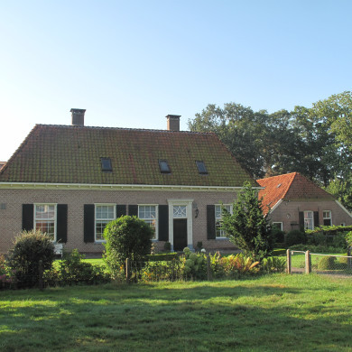 KOETSHUIS MET PAARDENSTAL EN KOETSIERSWONING behorende tot de buitenplaats Huis Oolde. Aan het begin van de oprijlaan staat het koetshuis met stal en woning, met de nok loodrecht op de laan, gebouwd in 1871 naar ontwerp van architect L.H.