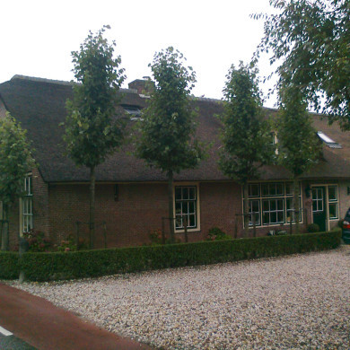 Boerderij, langhuistype, in top kruisvensters, 17e of 18e eeuws, deels rietgedekt.