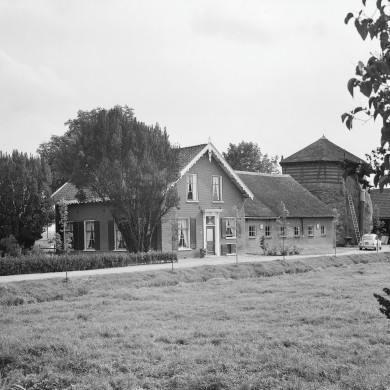 Veldzicht. 19e eeuwse boerderij opgetrokken in baksteen met dwars voor de -gemoderniseerde- stal geplaatst woonhuis onder pannen zadeldak met gesneden windveren en daklijsten; ingang in rechter zijgevel met eenvoudige omlijsting, deur met gietijzeren roostervulling en levensboom in bovenlicht, rechts onderkelderde opkamer; in voor- en zijgevels zesruitsschuifvenster met luiken.