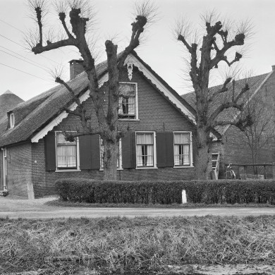 BOERDERIJ 'DE ELSEHOF' MET STAL, SCHUUR EN ZOMERHUISJE. Markant op het snijpunt van de noordelijke en westelijke singel gelegen witgepleisterde boerderij van het dwarshuistype. Eén bouwlaag onder een rieten zadeldak met smal overstek rustend op versierde houten consoles.